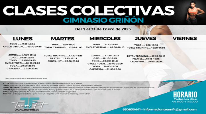 Nos complace anunciar que ya está disponible el horario de enero con una amplia variedad de clases colectivas diseñadas para ti.